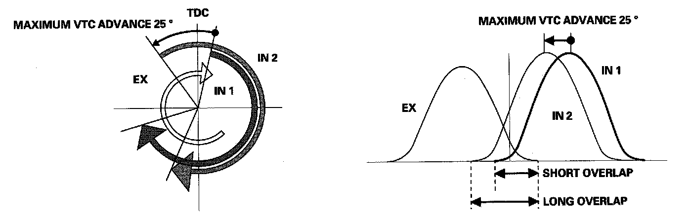 - The system reduces the cam advance at idle, stabilizes combustion, and reduces engine speed.