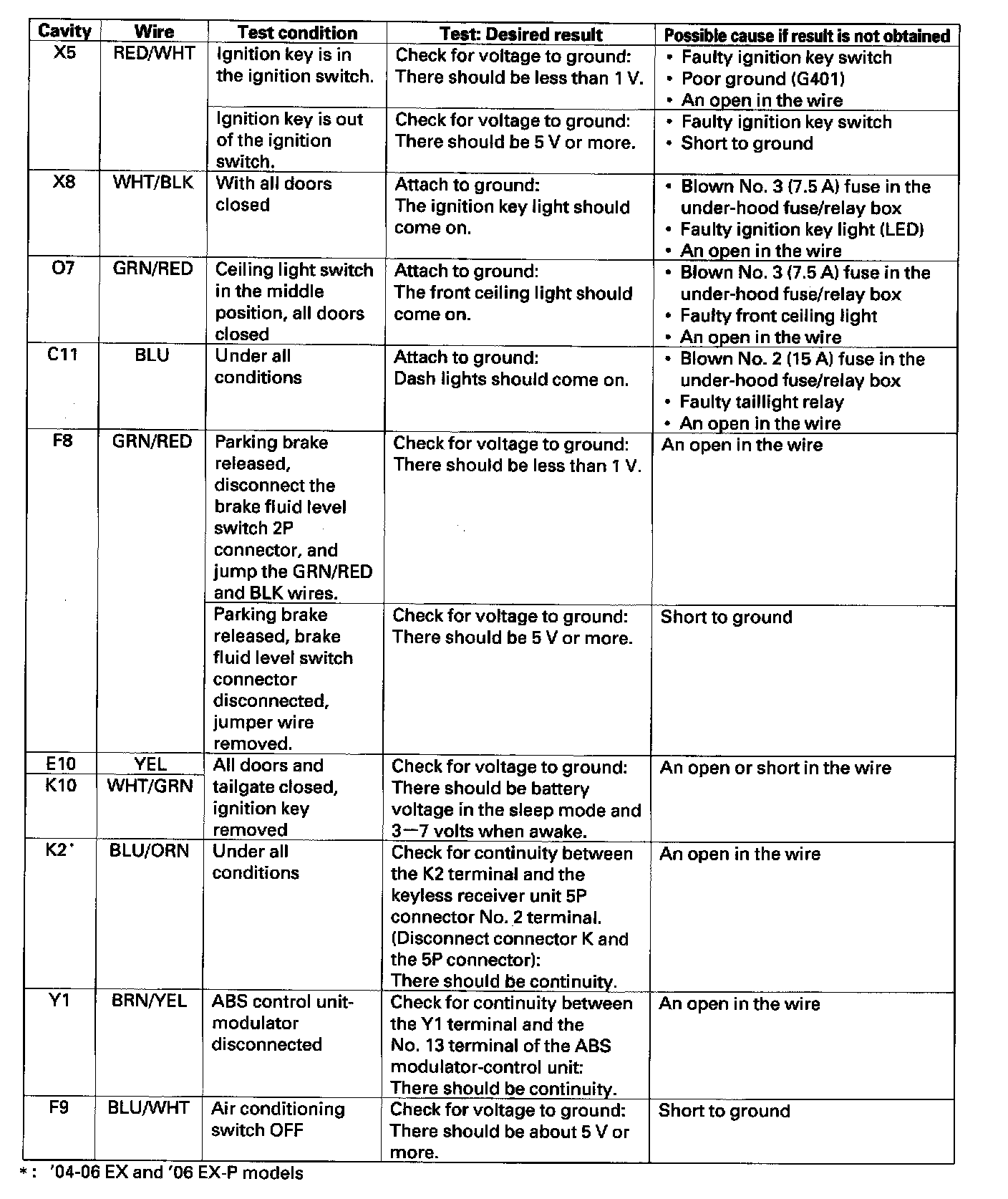 4. Reconnect the connectors to the under-dash fuse/relay box, and make these input tests at the appropriate connectors on the under-dash fuse/relay box.