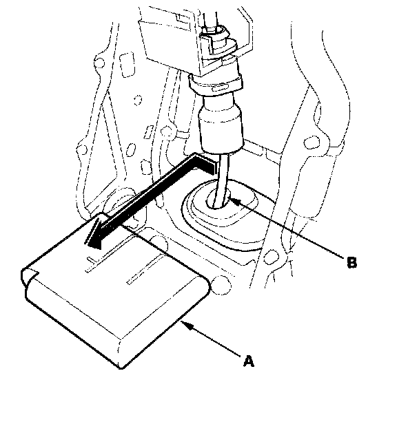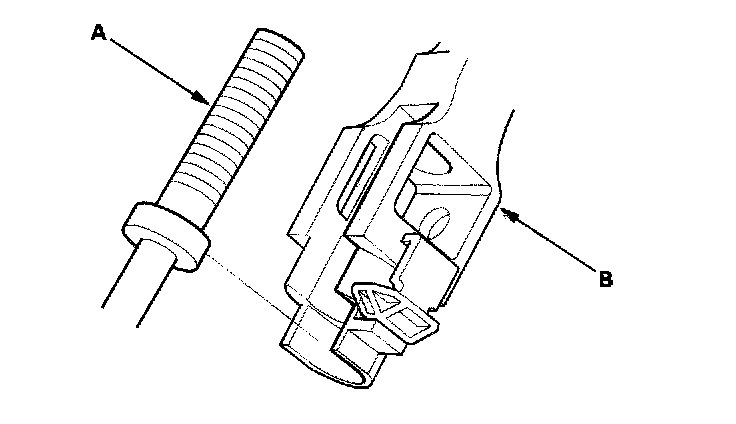 7. Separate the shift cable end (A) from the shift cable end holder (B).
