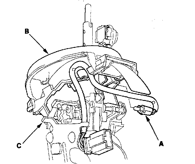 11. Remove the O/D switch/shift lock solenoid connector (C), then disconnect the connector.