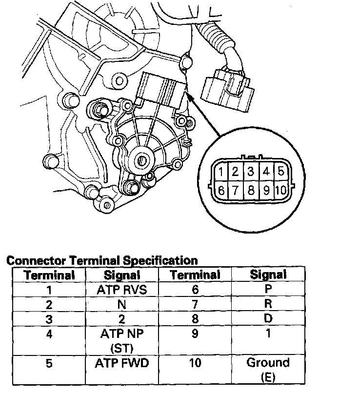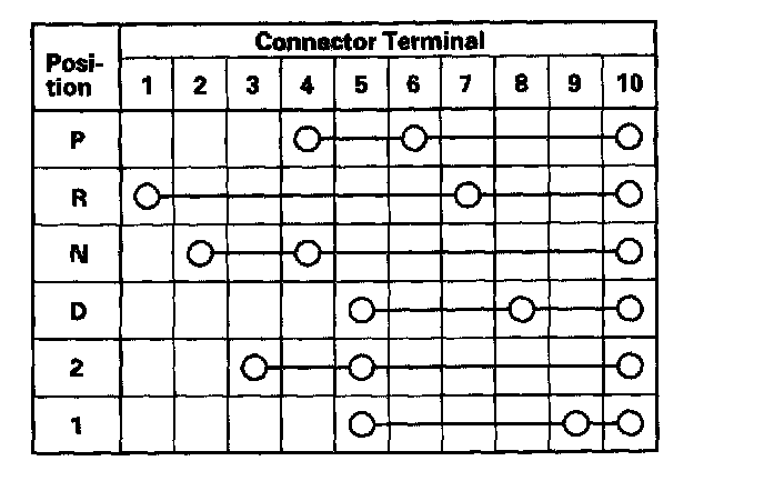 Home >> Honda >> 2006 >> Element 2WD L4-2.4L >> Repair and Diagnosis >> Powertrain Management >> Transmission Control Systems >> Testing and Inspection >> Component Tests and General Diagnostics >> Component Tests >> Transmission Range Switch Test