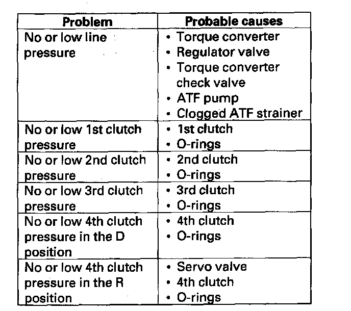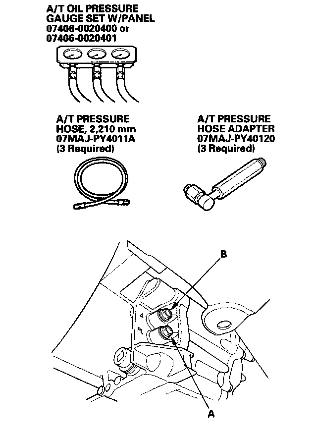 Home >> Honda >> 2006 >> Element 2WD L4-2.4L >> Repair and Diagnosis >> Powertrain Management >> Transmission Control Systems >> Testing and Inspection >> Component Tests and General Diagnostics >> Non-Trouble Code Procedures >> Pressure Test