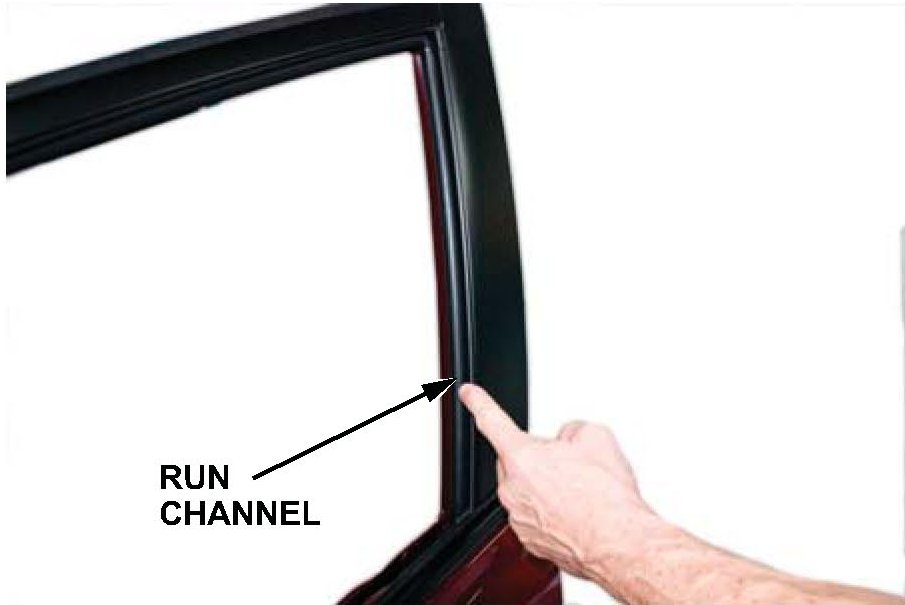 4. Inspect the run channel alignment, both inside and outside the door. Pay close attention just below the door skin; this is a common area for the run channel to be pinched.