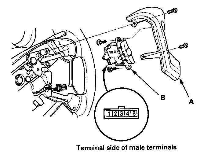 2. Remove the cover (A), then remove the cruise control set/decel, resume/accel, cancel switch (B).