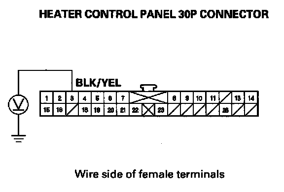 YES - Check for loose wires or poor connections at the heater control panel 30P connector. If the connections are good, substitute a known-good heater control panel, and recheck. If the symptom/indication goes away, replace the original heater control panel.