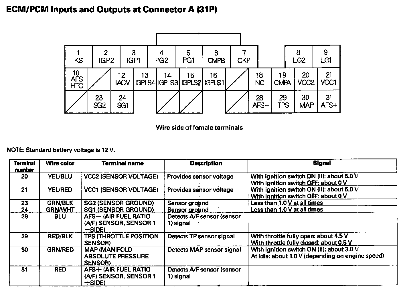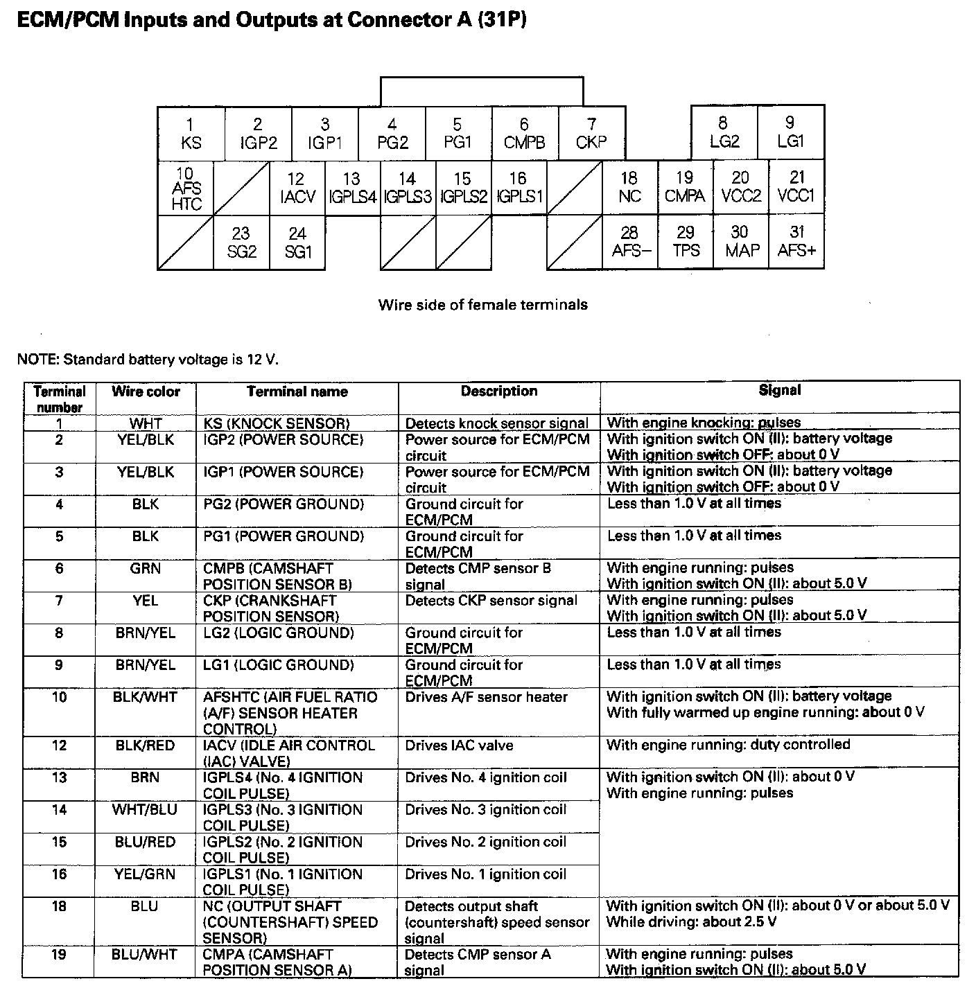 ECM/PCM Inputs And Outputs At Connector A (31P) Part 1: