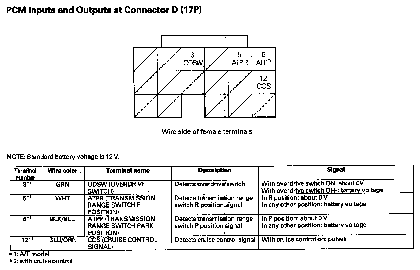 PCM Inputs And Outputs At Connector C (22P) Part 1: