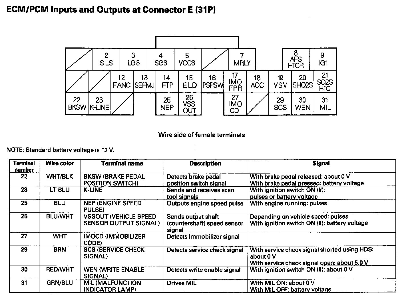 ECM/PCM Inputs And Outputs At Connector E (31P) Part 2: