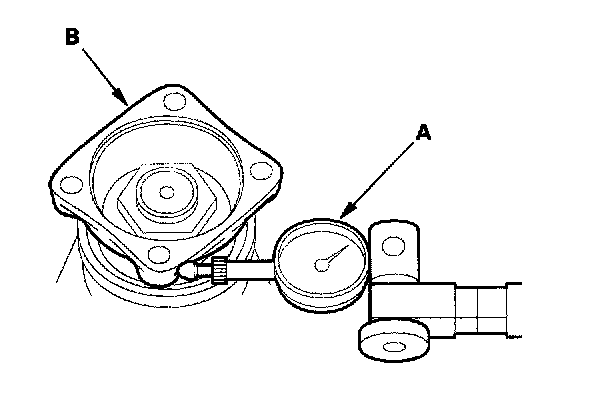 1. Set a dial indicator (A) on the companion flange (B) as shown.