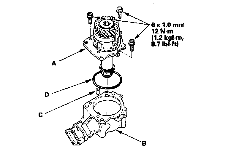 6. Remove the transfer holder assembly (A) from the transfer housing (B), then remove the dowel pin (C) and O-ring (D).