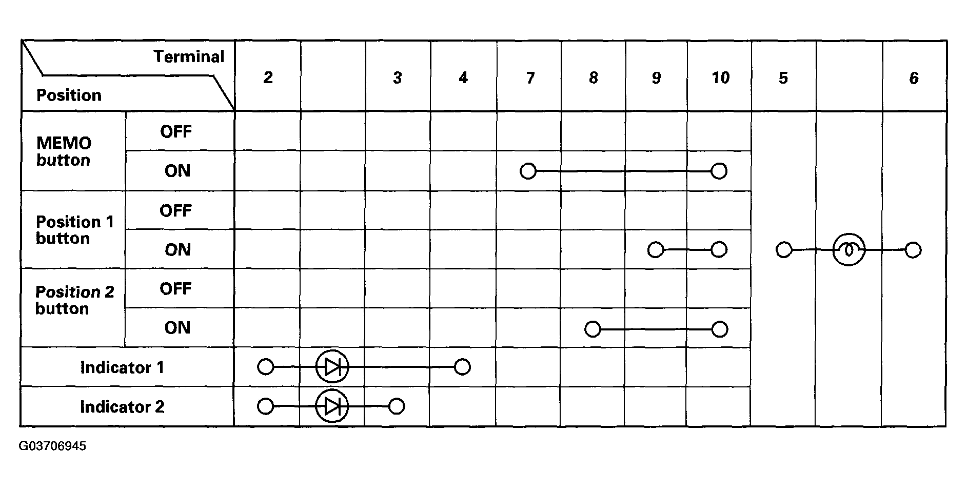 Home >> Honda >> 2006 >> Odyssey EX-L >> Repair and Diagnosis (Single Page) >> Accessories & Equipment >> Seats >> Driving Position Memory Systems (DPMS) >> Driving Position Memory Switch Test/Replacement