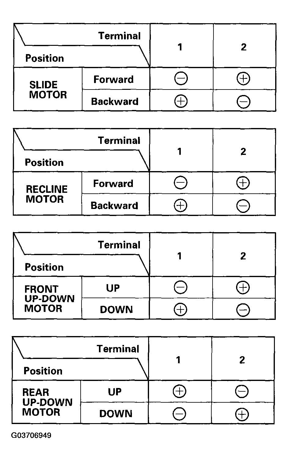 Home >> Honda >> 2006 >> Odyssey EX-L >> Repair and Diagnosis (Single Page) >> Body & Frame >> Seats >> Driving Position Memory Systems (DPMS) >> Driver's Power Seat Motor Test