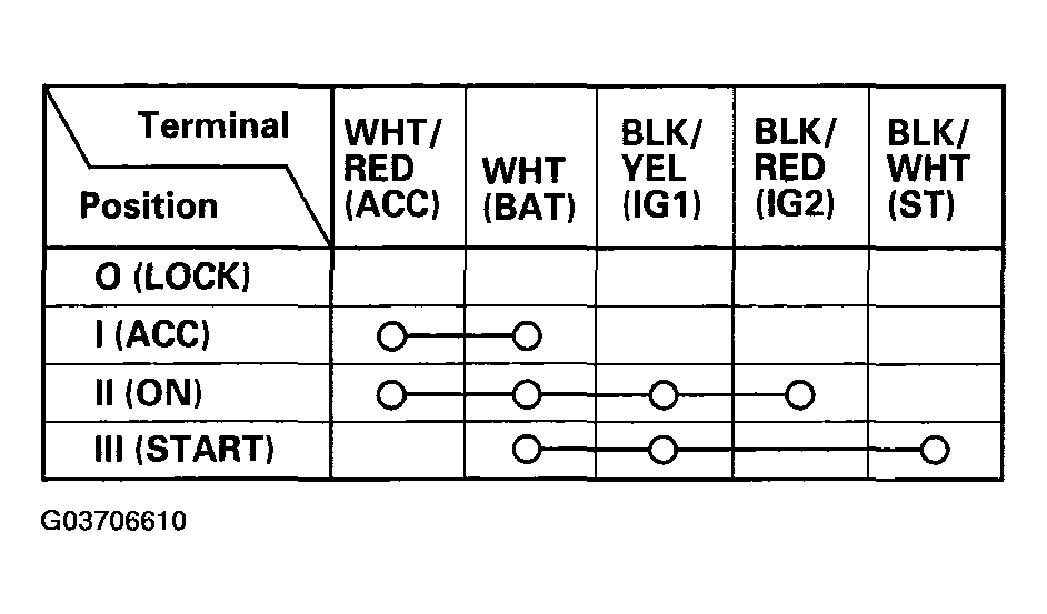 - If the continuity checks do not agree with the table, replace the steering lock/switch.