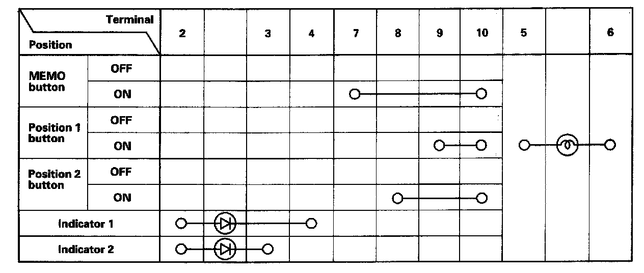 Home >> Honda >> 2006 >> Odyssey V6-3.5L >> Repair and Diagnosis >> Body and Frame >> Seats >> Memory Positioning Systems >> Testing and Inspection >> Component Tests and General Diagnostics >> Component Tests >> Driving Position Memory Switch Test/Replacement