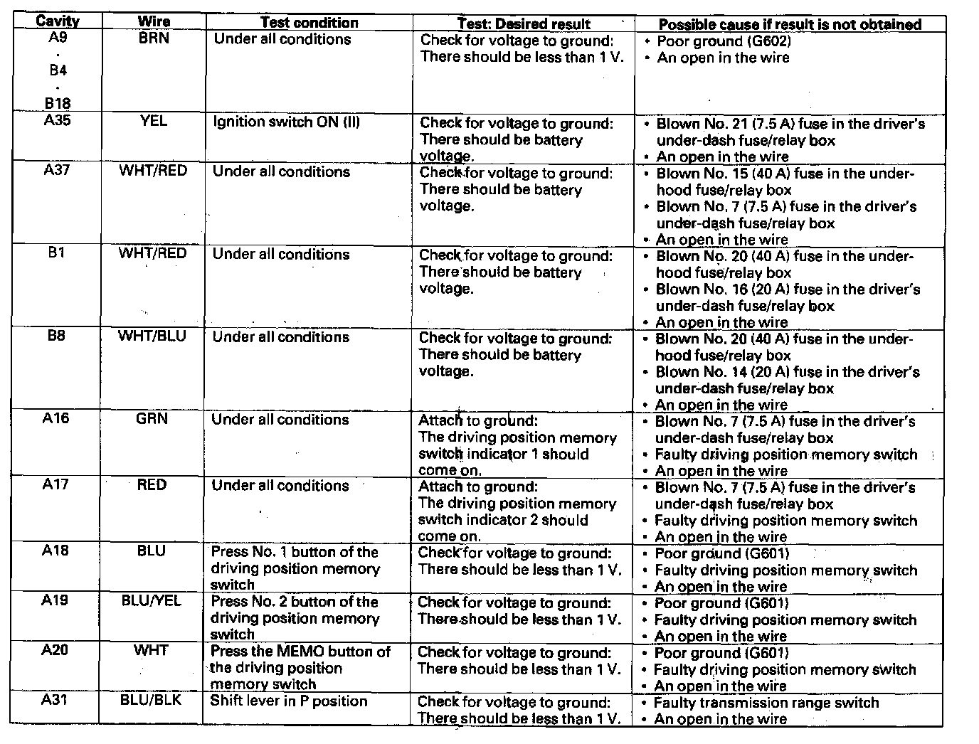 Home >> Honda >> 2006 >> Odyssey V6-3.5L >> Repair and Diagnosis >> Body and Frame >> Seats >> Memory Positioning Systems >> Testing and Inspection >> Component Tests and General Diagnostics >> Component Tests >> Power Seat Control Unit Input Test