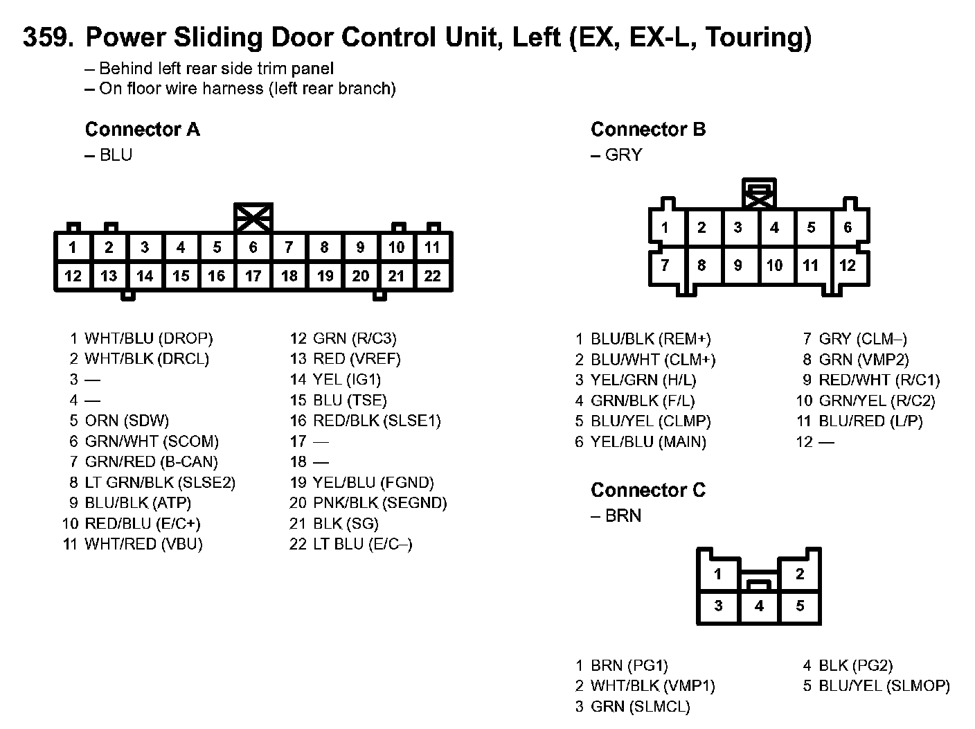 359. Power Sliding Door Control Unit, Left (EX, EX-L, Touring):