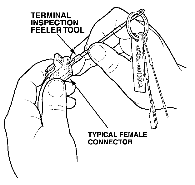 NOTE: Make sure you do not select a terminal tool that is larger than the mating male terminal because it would spread the female terminal and cause a loose fit.