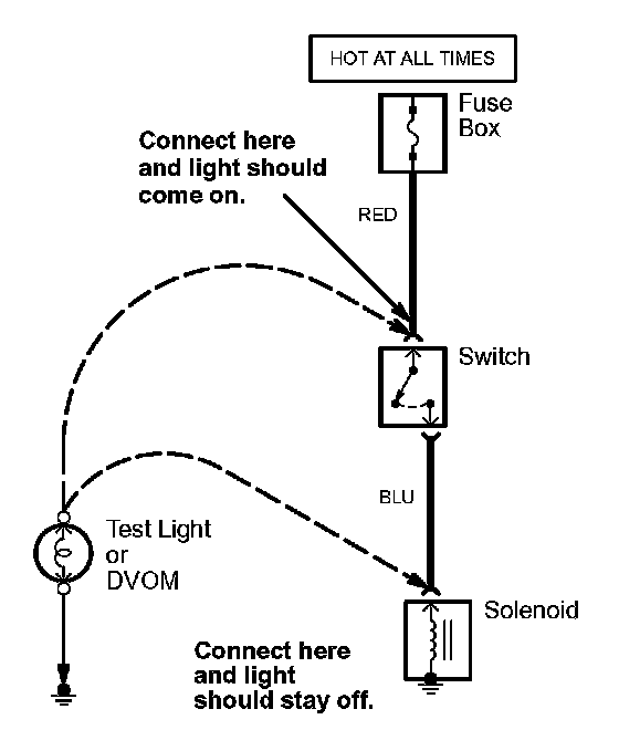 2. Connect the other lead of the test light or DVOM to the point you want to check.