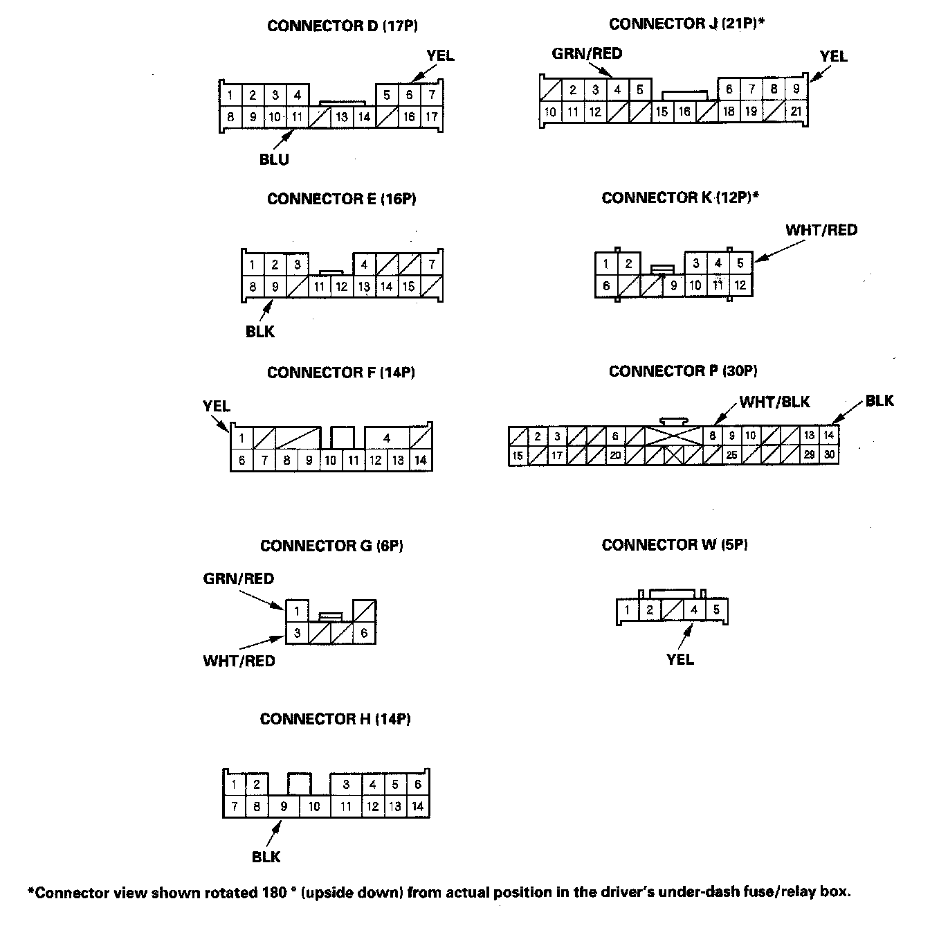 5. Reconnect the connectors to the driver's under-dash fuse-relay box, and make sure these input tests at the appropriate connectors on the driver's under-dash fuse/relay box.
