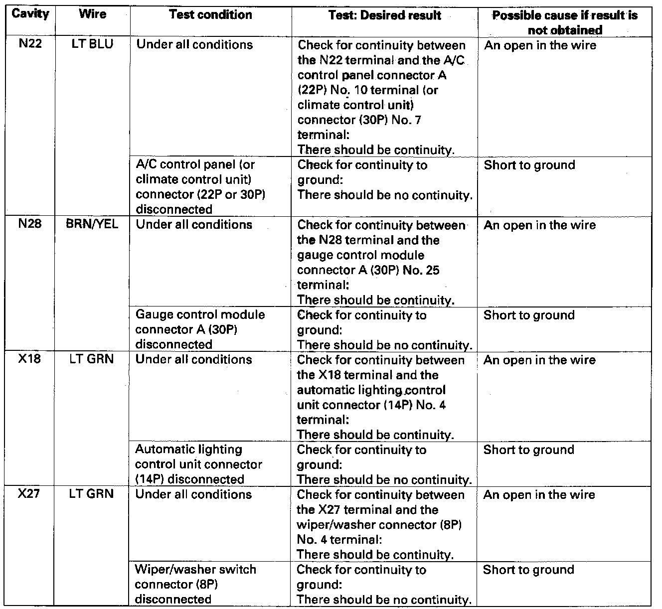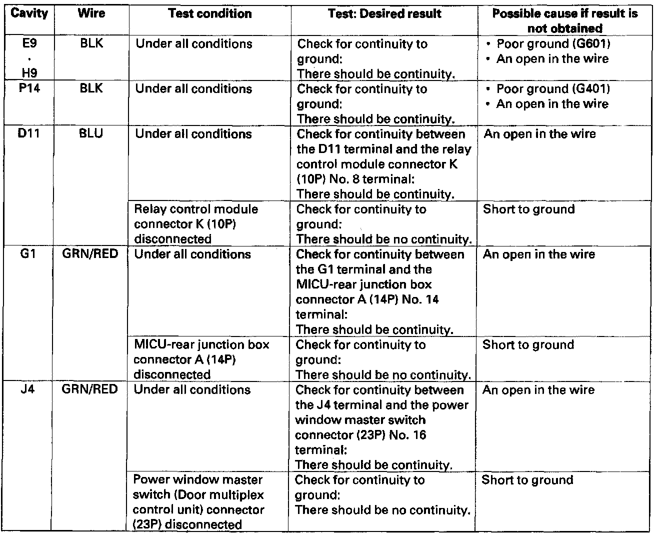 Multiplex Integrated Control Unit Input TestNOTE: Make sure the ignition switch is OFF before troubleshooting the driver's under-dash fuse/relay box connectors.