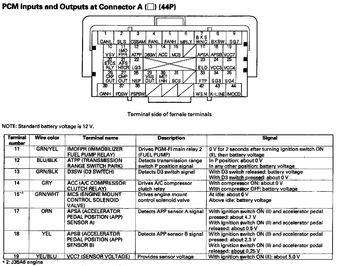 PCM Inputs And Outputs At Connector A (44P) Part 4: