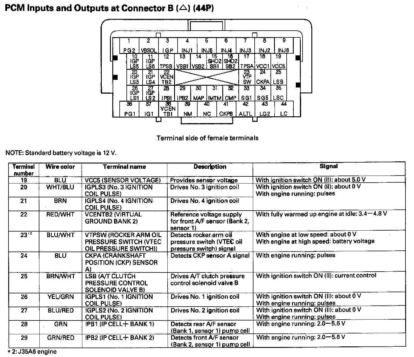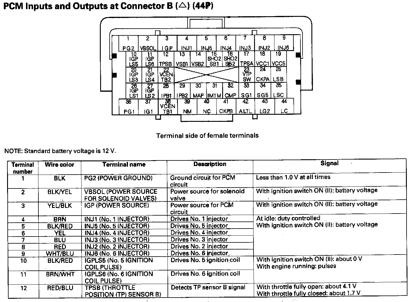 PCM Inputs And Outputs At Connector B (44P) Part 4: