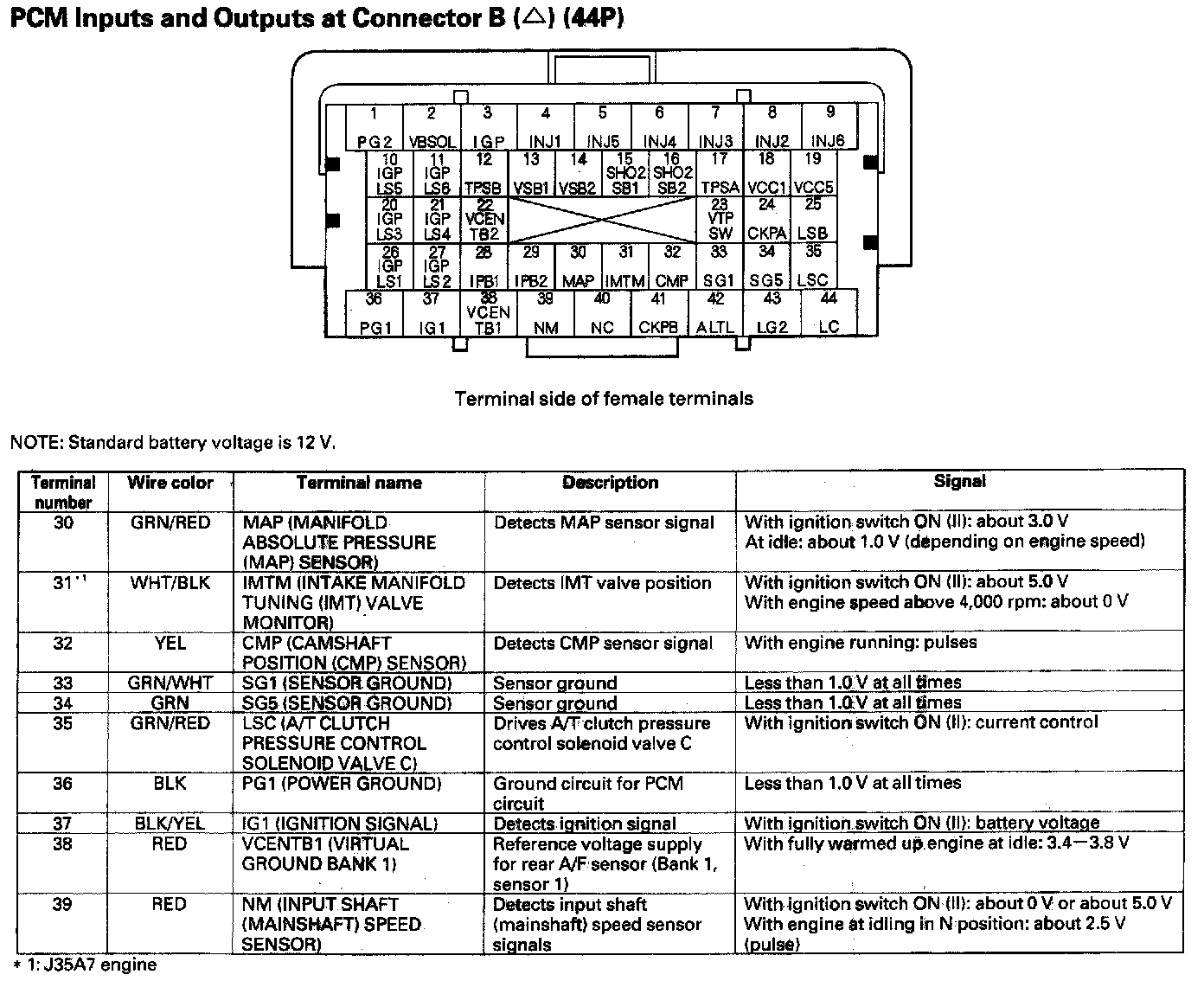 PCM Inputs And Outputs At Connector B (44P) Part 1: