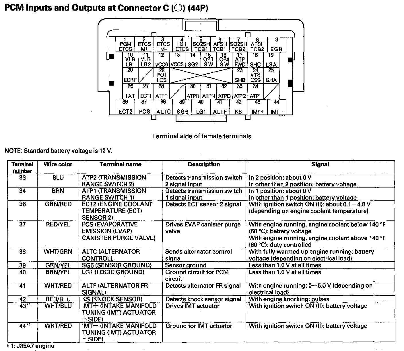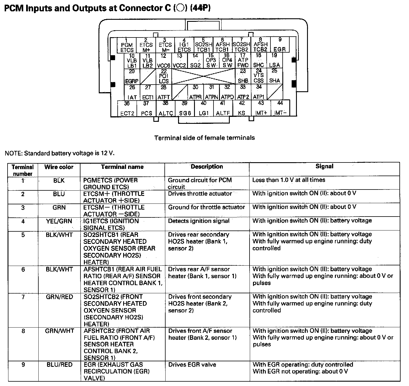 PCM Inputs And Outputs At Connector C (44P) Part 1: