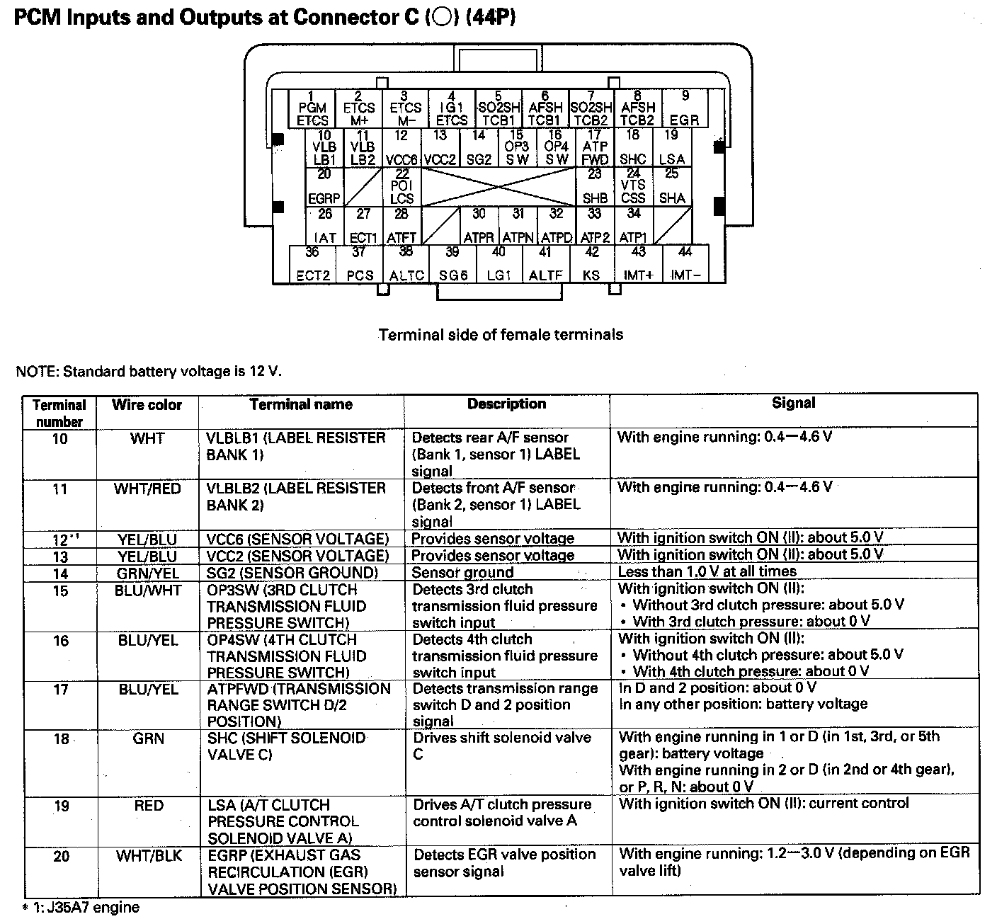 PCM Inputs And Outputs At Connector C (44P) Part 3: