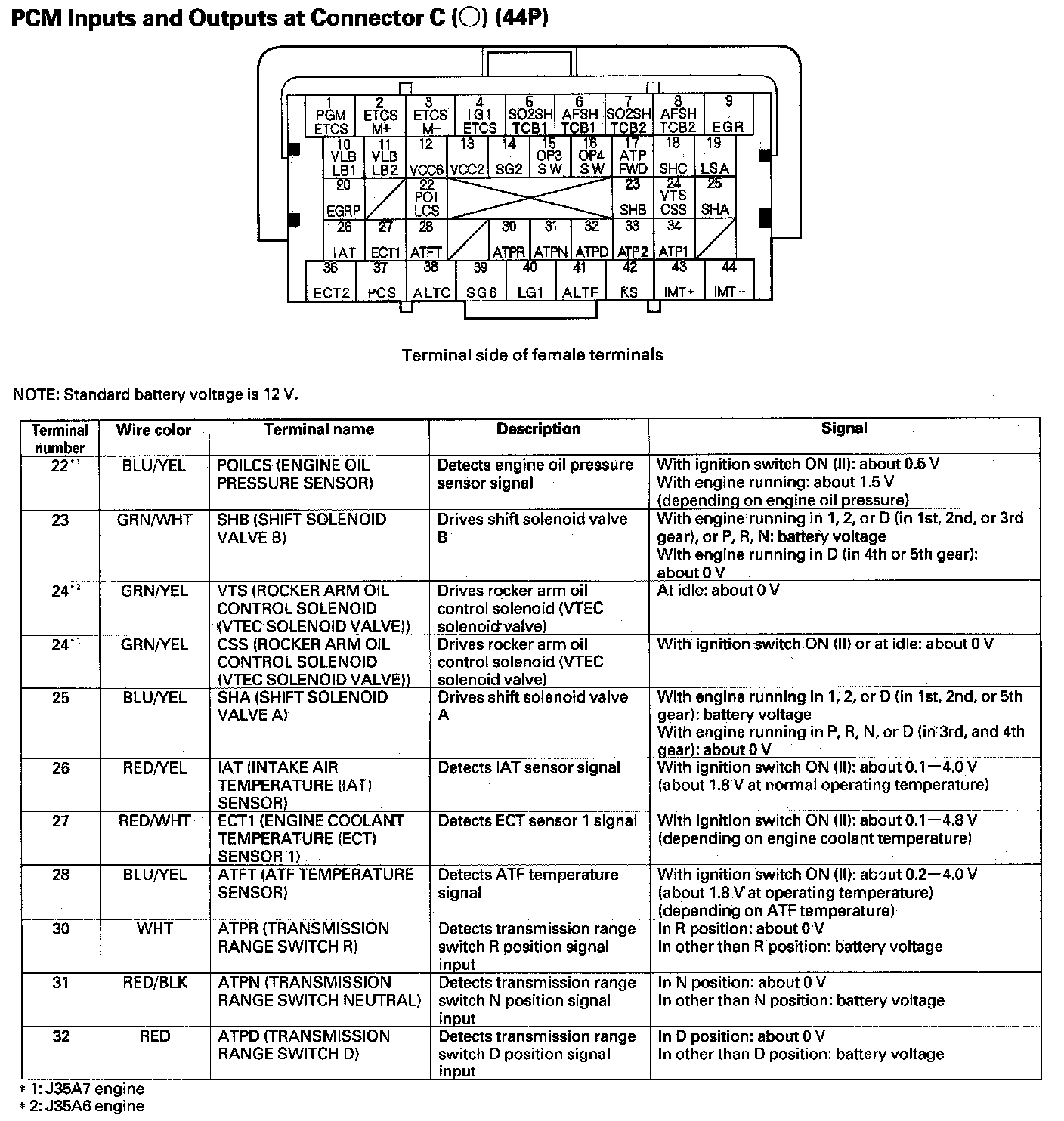 PCM Inputs And Outputs At Connector C (44P) Part 2: