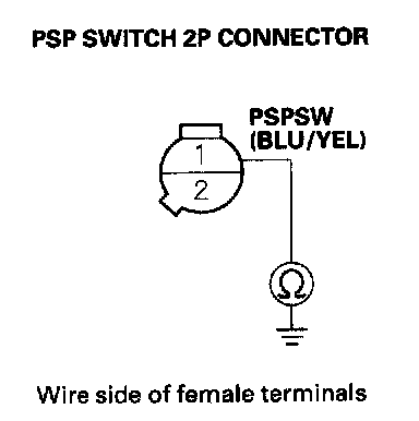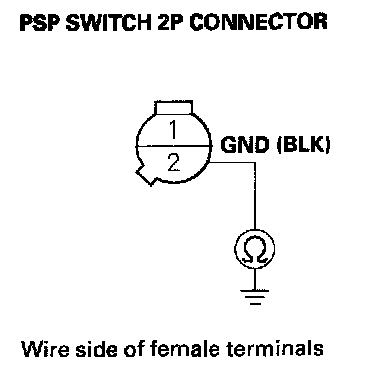 13. Check for continuity between PSP switch 2P connector terminal No. 1 and body ground.