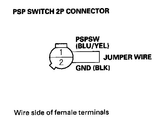 19. Remove the jumper wire from the PSP switch 2P connector.