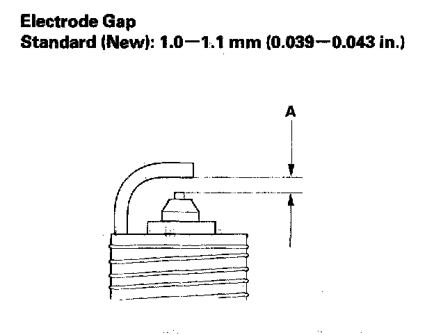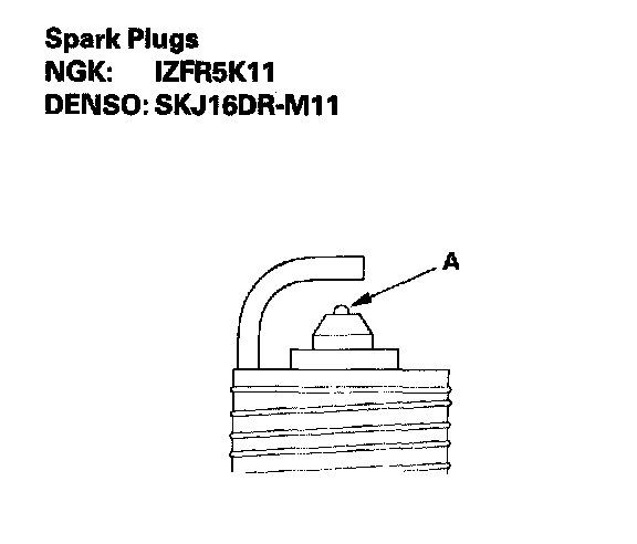 3. Do not adjust the gap (A) of iridium tip plugs; replace the spark plug if the gap is out of specification.