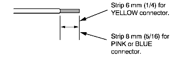 7. If you are using a yellow splice connector, strip about 6 mm (1/4 inch) of insulation off the ends of both wires. If you are using a pink or blue splice connector, strip off about 8 mm (5/16 inch) of insulation.