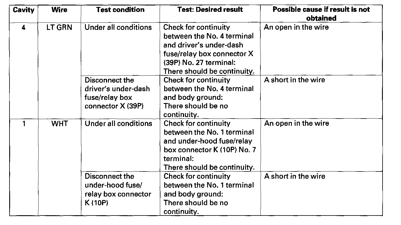 5. With the connector still disconnected, make these input tests at the connector.