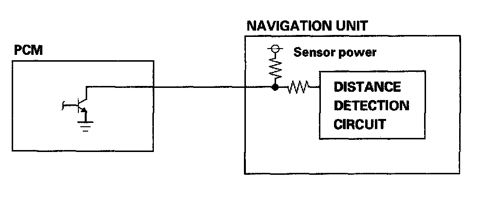 The navigation unit calculates the vehicle position (the driving direction and the current position) by receiving the directional change signals from the yaw rate sensor and the travel distance signals from the PCMs vehicle speed pulse (VSP) signal.