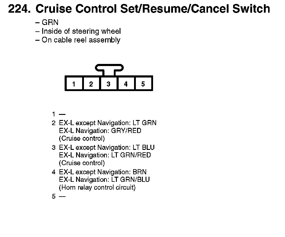 224.Cruise Control Seat/Resume/Cancel Switch: