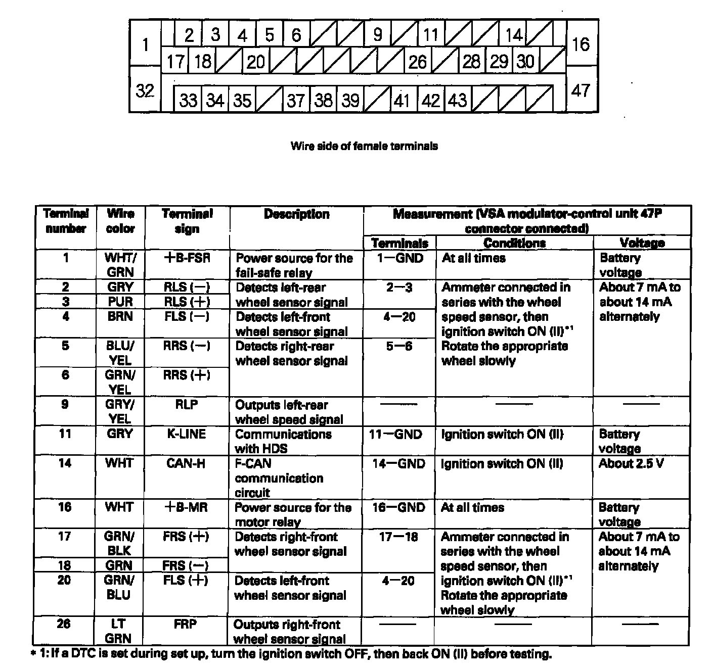 VSA Modulator-Control Unit Inputs and Outputs for 47P Connector: