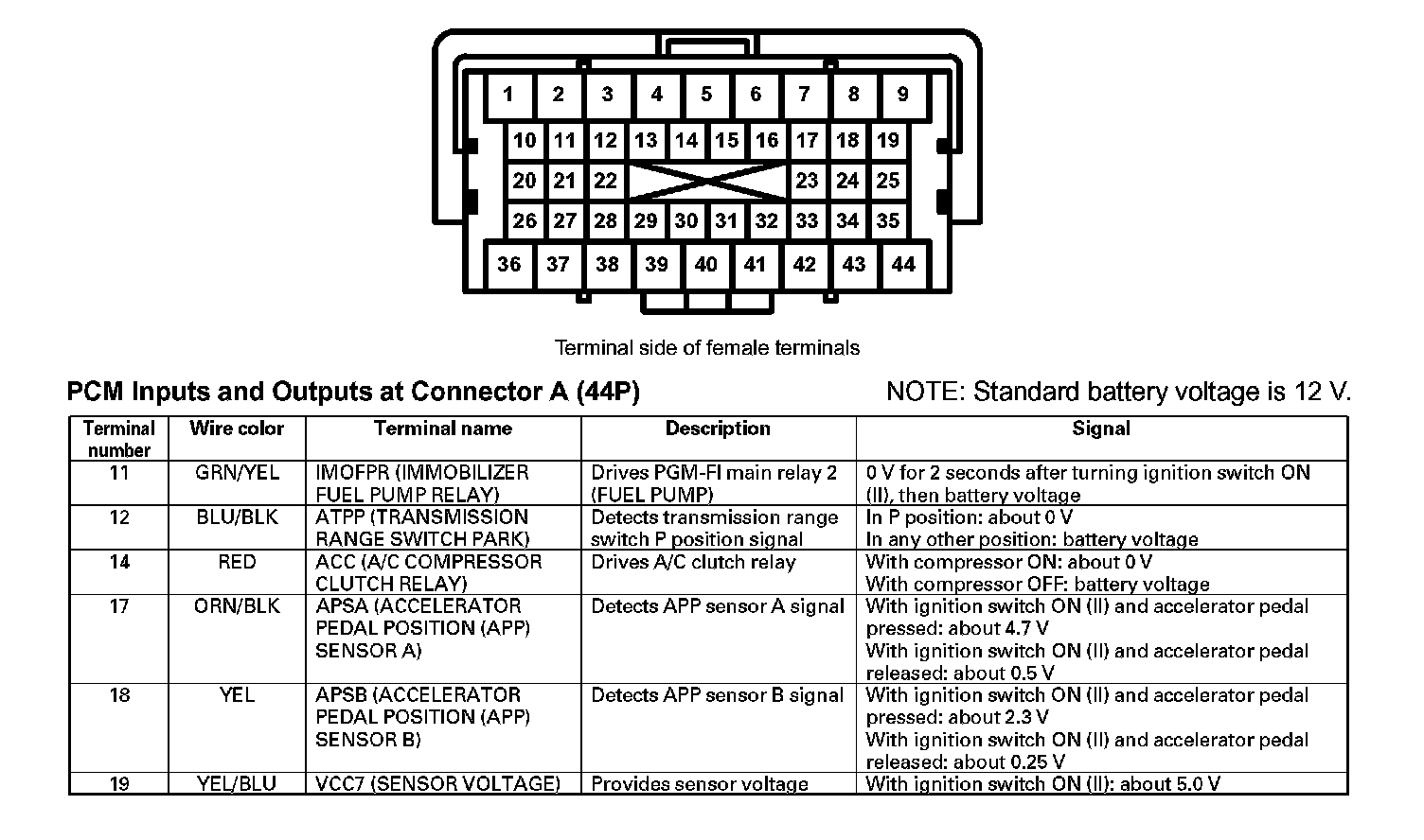 PCM Inputs And Outputs At Connector A (44P) Part 4: