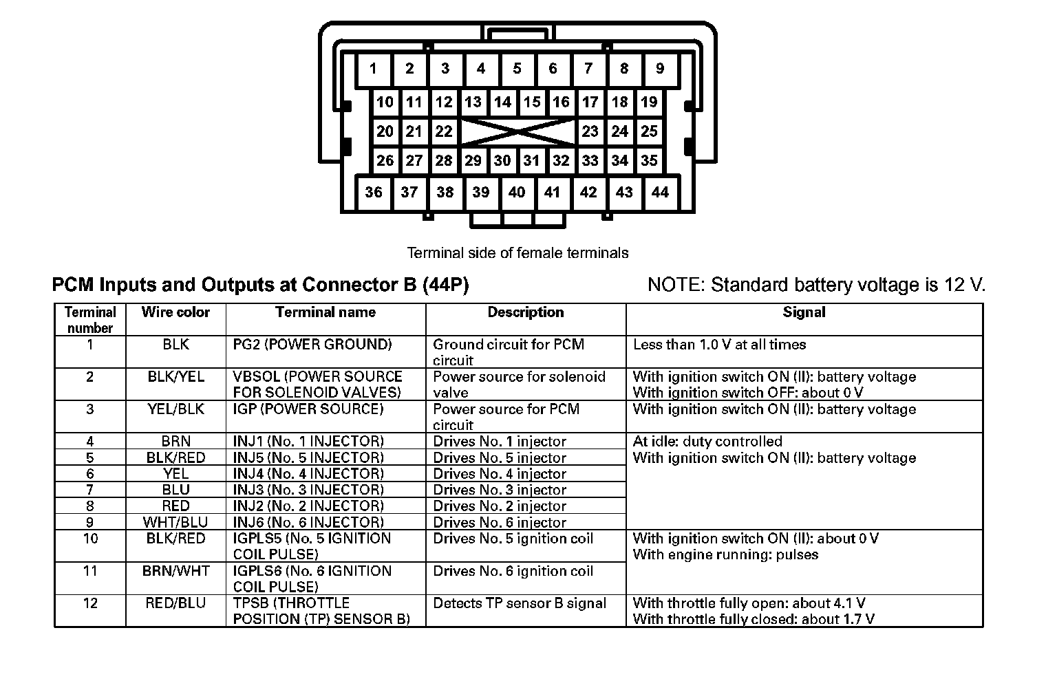 PCM Inputs And Outputs At Connector B (44P) Part 1: