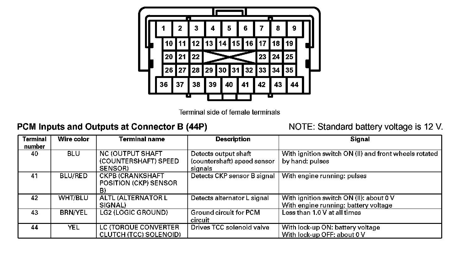 PCM Inputs And Outputs At Connector B (44P) Part 3:
