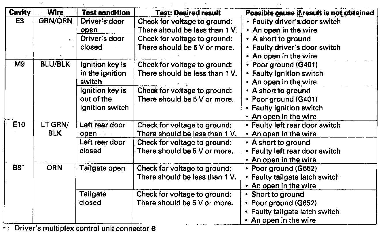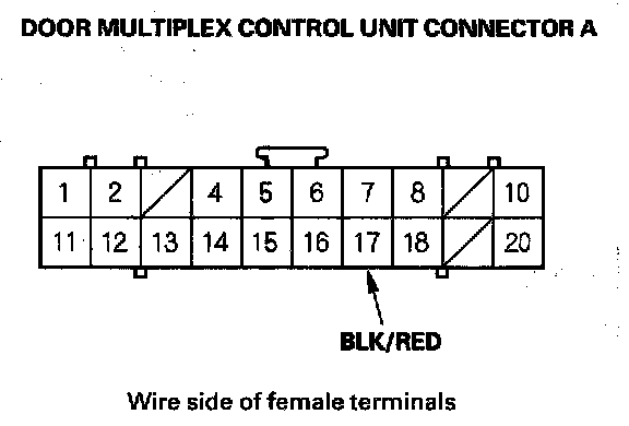 12. Reconnect the connector to the door multiplex control unit, and make the input test at the connector.