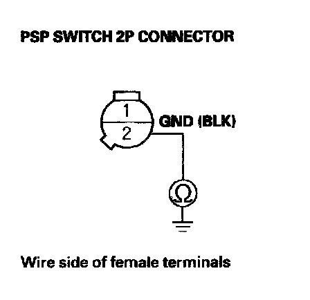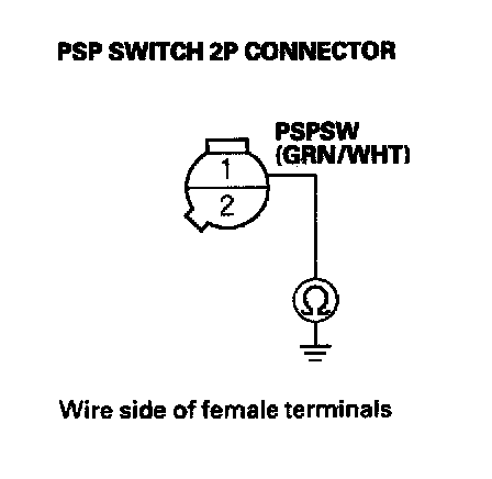 13. Check for continuity between PSP switch 2P connector terminal No.1 and body ground.