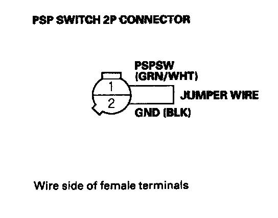 19. Remove the jumper wire from the PSP switch 2P connector.