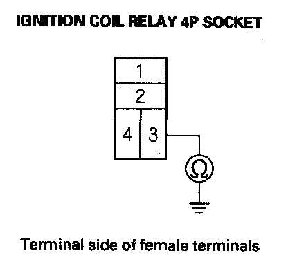 7. Check for continuity between ignition coil relay 4P socket terminal No. 3 and body ground.