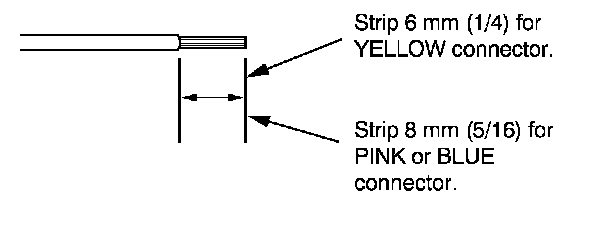 7. If you are using a yellow splice connector, strip about 6 mm (1/4 inch) of insulation off the ends of both wires. If you are using a pink or blue splice connector, strip off about 8 mm (5/16 inch) of insulation.
