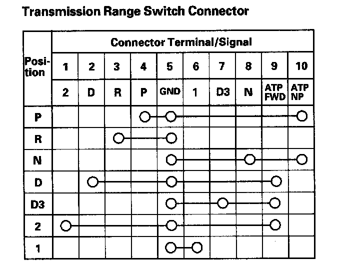 Transmission Range Switch Connector: