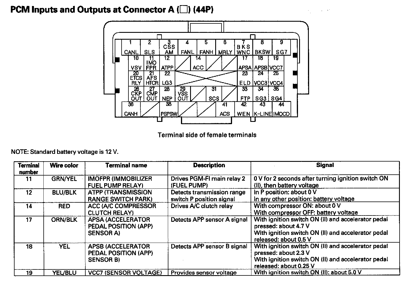 PCM Inputs And Outputs At Connector A (44P) Part 4: