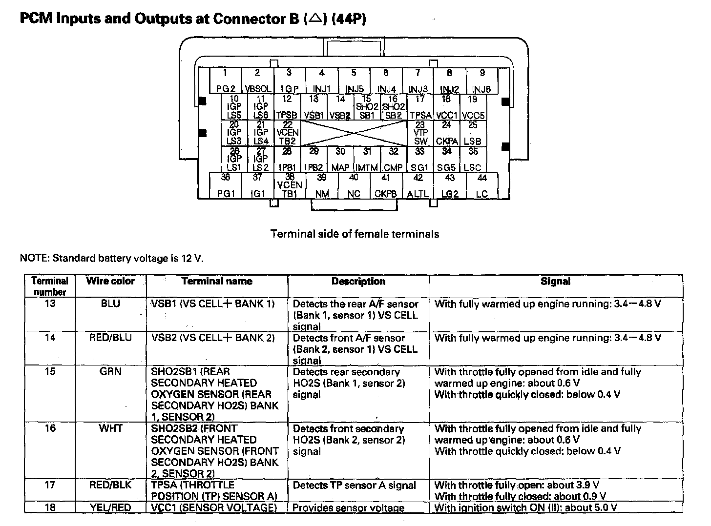 PCM Inputs And Outputs At Connector B (44P) Part 3: