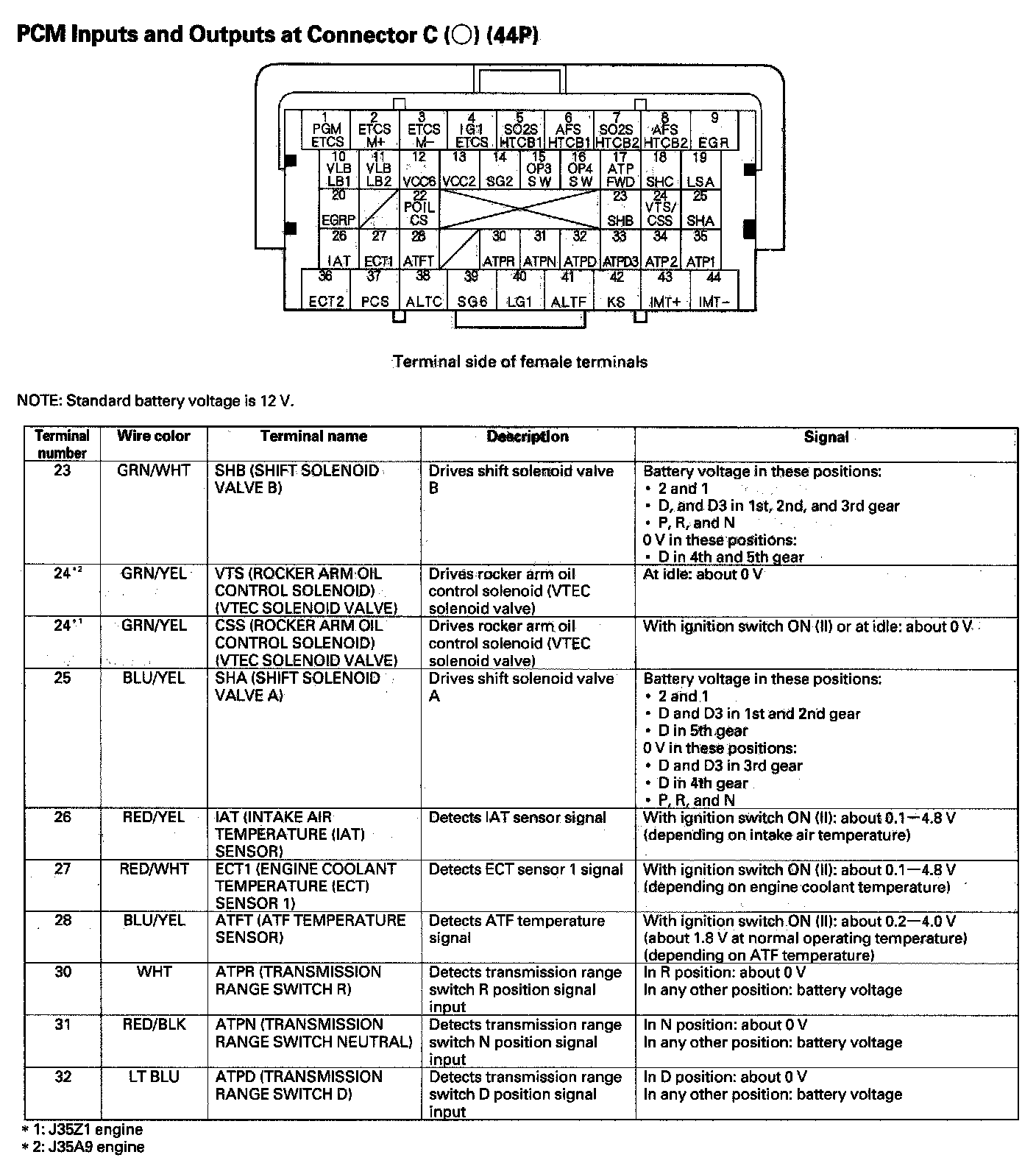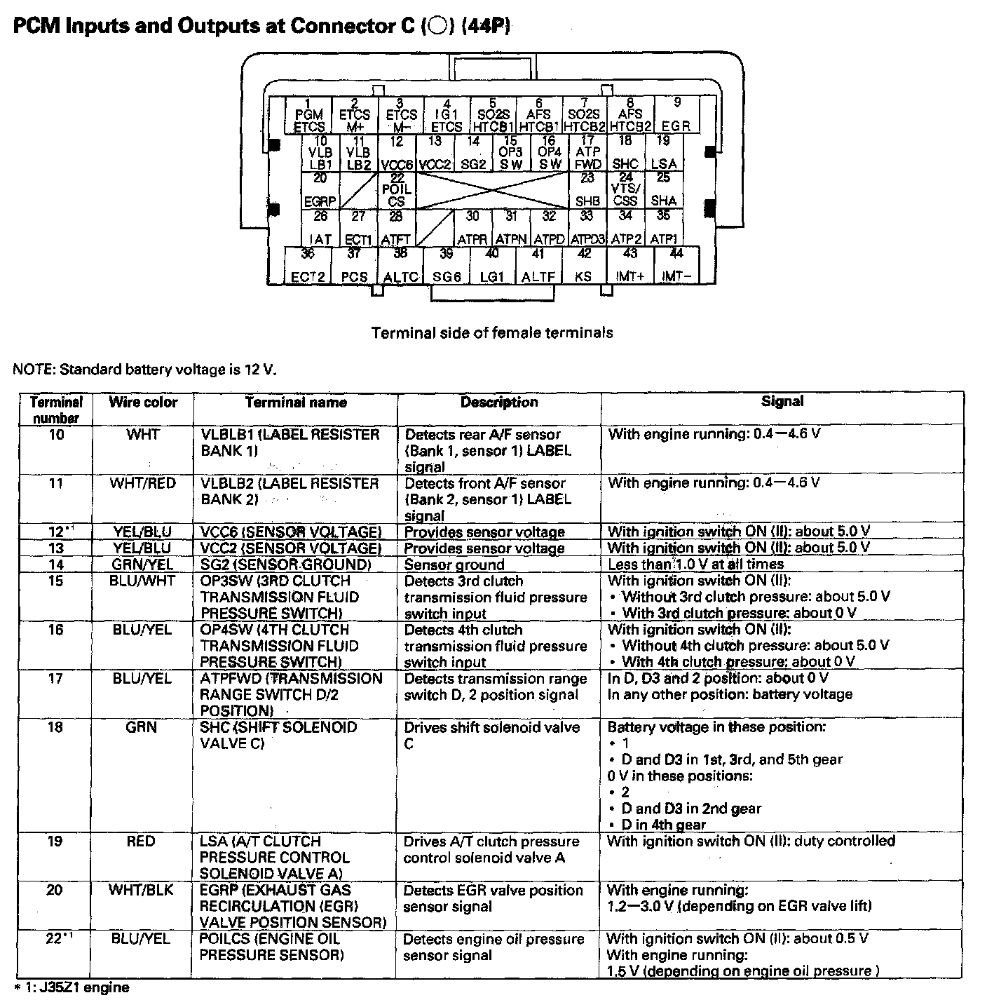 PCM Inputs And Outputs At Connector C (44P) Part 1: